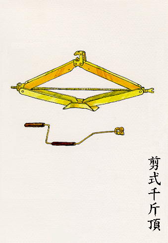 一種頂起重物的工具。利用螺旋、齒條或油壓作用,將重物抬高。常於安裝、修理機器時使用。 |
