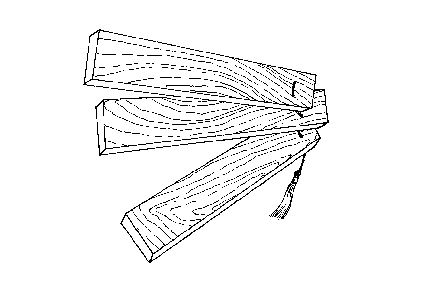 國樂敲板類: 北管樂團的拍板,大都由兩片竹片組成,上端用繩子串連,演奏時,用手握住一片,並甩動另一片使他們互相撞擊出聲。 |