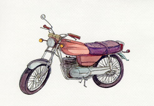用內燃機發動行駛的機車。為英語motorcycle的音譯。簡稱為「摩托」。也稱為「電單車」、「機器腳踏車」。 |