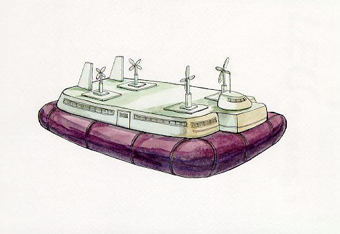 名詞解釋: 氣墊船在船身下方有一利用柔性材料所製成的圍裙,經由不斷的供應高壓空氣到圍裙內,便會產生氣墊,使船身能脫離水面成地面航行,因為船身不與水面接觸,所以氣墊船的航速可以比傳統船舶高數倍。氣墊船除了可在水面航行外,也可以在沙灘及其它平坦的地面上航行。 |