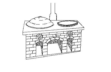 以磚土、石塊等砌成,用來生火烹飪的設備。如:「土灶」、「爐灶」、「石灶」、「灶火」、「灶神」。 |