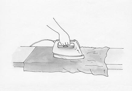 利用熨斗等器具,藉熱力把衣物、紙張等皺摺扭曲的部分壓平。如:「這件舊襯衫熨過之後,挺直如新。」 |