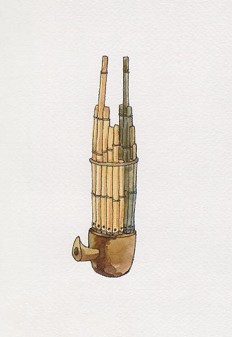 以一組長短不同的管排列瓠中所製成的樂器,用口吹奏。 |