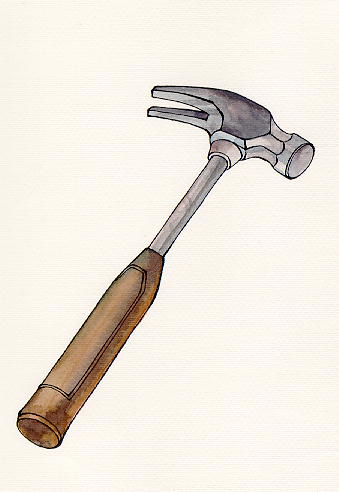 釘鐵釘時所用的錘。底部是方柱形,用以釘釘子;上端則為扁平形或尖柱形,有時中間且有狹縫,可用來拔起釘子。 |
