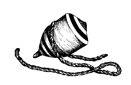 一種木頭製的圓錐形玩具。下端有鐵尖,繞上繩子,急甩出去,落地後就能在地上直立旋轉。 |