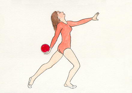 名詞解釋: 韻律體操係指利用各種器具,如球、繩、環、帶、棒等,配合音樂伴奉,以成隊或個人跑跳躍動,操持、交換器具,以進行評分競賽的體操。 一九三○年代,蘇聯首先以「藝術體操」的名稱,做為比賽性的運動。一九五○年以後,這種由基本體操、特技及舞蹈基本動作要素構成整套動作,並以近乎審美的形式進行評分競賽的體操,在東歐國家開始流行。至一九六三年國際體操總會(International Gymnastics Federation, FIG)於匈牙利首都布達佩斯舉行第一屆世界錦標賽,當時名稱為現代體操(Gymnastique Moderne),係在十二公尺正方的地板或墊子上進行成隊比賽與個人比賽。其後逐年發展,漸受世人喜愛與重視,遂於一九八四年開始列為奧運競賽項目。 世界韻律體操錦標賽的種類,分為成隊賽與個人賽兩種。一般而言,均以器具操作為其主要特徵。成隊賽為六人一隊,於二分三十秒至三分之間,做連續性的跳躍及姿勢表現,動作多彩多姿,跑跳移動,交換器具,隊形穿梭變化,並做有條不紊的統一性演出。個人比賽的項目分為球、繩、環、帶、棒等項目,演出時間均為一分至一分三十秒之間,演出者竭力發揮各項器具的特性,及合乎自己個性的動作,配合音樂,予以淋漓盡緻的演出。韻律體操內容,無論成隊以及個人,均以自選動作比賽。錦標分為:成隊總分、個人全能與個人單項等三種。 |