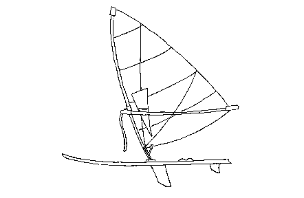 結構簡單,在衝浪板上架上可以隨風向自由回轉的帆桅及帆板即成。 |