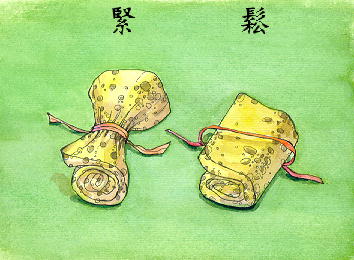 1. 密合束縛,與「鬆」相對。《說文解字.糸部》:「緊,纏絲急也。」《三國演義》第一九回:「將呂布繩纏索綁,緊緊縛住。」《醒世恆言.卷一三.勘皮靴單證二郎神》:「潘道士結束得身上緊簇,也不披法衣,也不仗寶劍。」 2. 嚴密、嚴格。《醒世恆言.卷六.小水灣天狐詒書》:「恐有奸細,至京探聽,故此門禁十分嚴緊,出入盤詰。」《紅樓夢》第八三回:「近來頗肯唸書。因他父親逼得嚴緊,如今文字也都做上來了。」 3. 急迫、急驟。如:「緊急」、「緊迫」。《官話指南.卷二.官商吐屬》:「因為我們今兒個有點兒緊用項,找您摘給我們幾百塊錢用。」《水滸傳》第一一回:「彤雲密佈,朔風緊起。」 4. 拮据、不寬裕。如:「緊缺」、「手頭很緊」。 5. 重要。《三國演義》第四九回:「請暫少住,有緊話說。」《紅樓夢》第七七回:「今他去了,襲人只得要問,因思此任比日間緊要之意。」 6. 牢固、堅定。《水滸傳》第一○六回:「緊守城池,不在話下。」《老殘遊記.二編》第六回:「你緊記在心,將來自有個大澈大悟的日子,你就知道不是尋常的套話了。」 7. 加快、不停止。元.關漢卿《五侯宴》第三折:「走的緊來到荒坡佃,覺我這可撲撲的心頭戰。」《文明小史》第三八回:「兄弟就知會藩司掛牌,你趕緊動身前去。」 8. 很、甚。元.無名氏《盆兒鬼.楔子》:「遇著一個打卦先生,叫做賈半仙,人都說他靈驗的緊。」《儒林外史》第三回:「這個主意好得緊,妙得緊。」 |