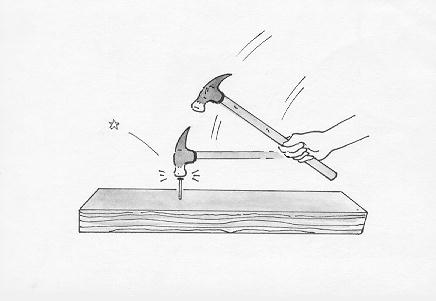能使物體附著的細條形東西,多用金屬製成。如:「釘子」、「鐵釘」、「銅釘」、「螺絲釘」。 |