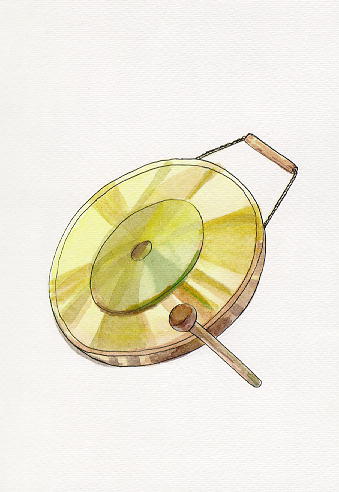 名詞解釋: 樂器名。鑼是金屬造成的打擊樂器,它有一個圓形的碟身,碟身中央向內凹,通常是垂直掛在支架上,用軟頭槌子敲打。 |